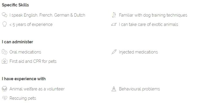 You're not only fond of animals, you also have extensive experience in their care. This could be in either a professional or a personal capacity: perhaps you've had dogs or cats of your own for many years, for example. Make sure that your specific expertise matches the services you intend to promote: if you have an in-depth knowledge of cats, it clearly doesn't make sense to offer a dog walking service. Provide full details of your experience with animals and precisely what that entailed in your profile, and don't forget to highlight relevant skills, such as dog training, first aid, dealing with behavioural problems and so on.
